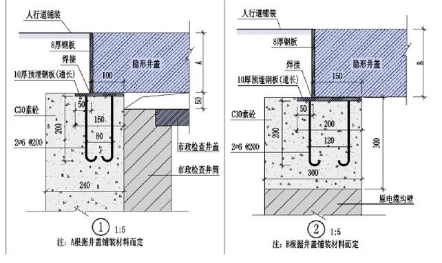 (1)原則上,圓形檢查井采用雙層井蓋設計,電纜溝等方形井采用單層井蓋設計。