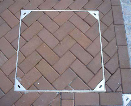 (4)隱形井蓋安裝時應注意:隱形井蓋在硬質鋪裝面上時,井蓋內的鋪裝縫隙和材料與周邊石材縫隙保持一致,同一路段和區域井蓋開啟方向保持一致.