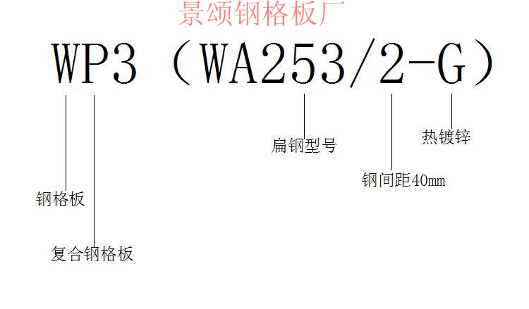 4.WP3(WA253/2-G)鋼格板的型號表示: