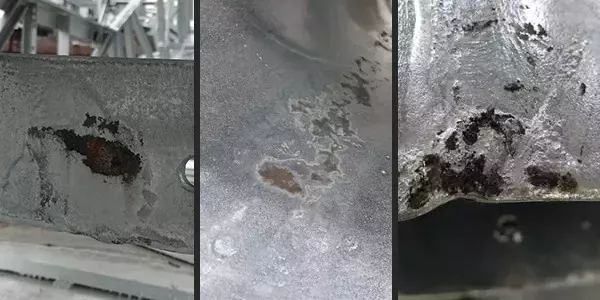 1.鋼格板酸洗后不水洗或水洗不充分,直接進入溶劑池內,使溶劑的酸性提高,鐵離子增多;或者以鹽酸作助鍍劑,使被帶鋼表面上覆蓋一層鐵鹽,帶進鋅液中,鍍鋅時形成合金渣附著在工件表面;