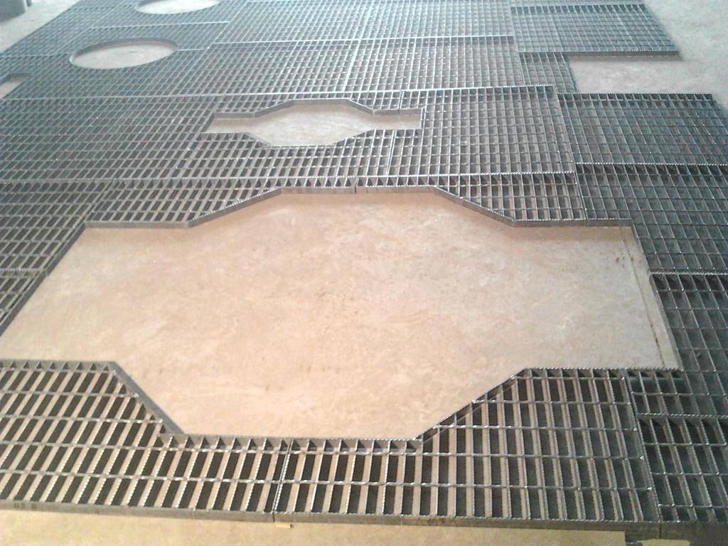 4.開孔,鋼格板一般為熱鍍鋅,根據(jù)畫線位置用切割機(jī)切IJ格柵板,不可用電焊切割,而且盡量使施工面平整光潔,易于下一步施工。
