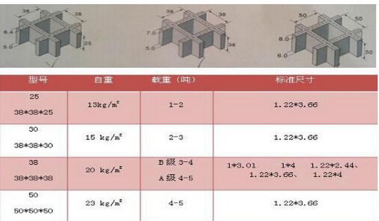 序號 高度(mm) 單格尺寸(mm) 整板尺寸 (mm) 孔隙率 理論重量 (kg/m2)